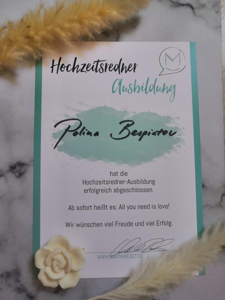 Hi, ich bin Polina, Hochzeitsplanerin, freie Traurednerin und Begründerin der Eventplanung für Hochzeitsfeiern und freie Trauungen in Köln.